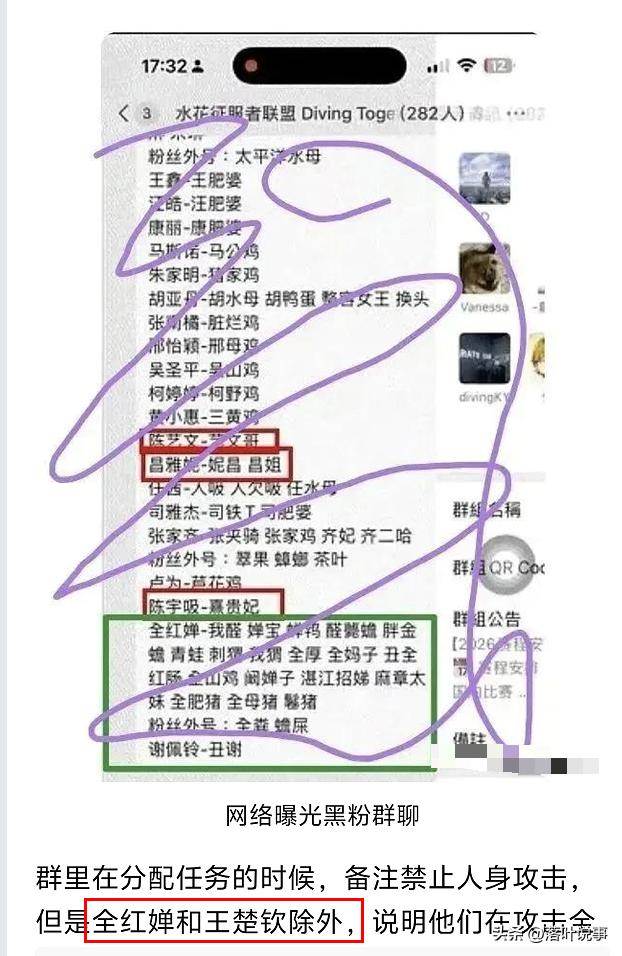 而隨著報警訊息一同曝光的,還有一整套令人脊背發涼的完整證據:一個282人的微信群,就是這場針對全紅嬋的網暴風暴中心,群內不僅有瘋狂的黑粉,更有多名跳水界現役運動員、裁判、專項媒體人牽涉其中,這場惡意圍獵的真相,遠比我們想象的更醜陋。