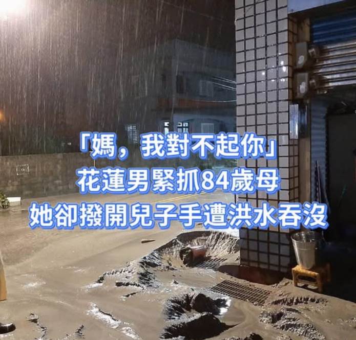 他緊緊拉著媽媽的手不敢放,但洪水卻在短短幾秒鐘內越漲越高,他和媽媽2個人都必須仰著頭才能呼吸,剛找到鐵門抓著不動,想辦法要將媽媽托上去,未料媽媽這時竟毅然決然的撥開他的手,隨後被洪水吞沒,讓他當場崩潰,不斷哭喊「媽媽,我對不起你」。