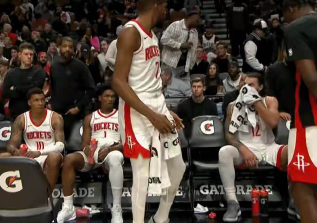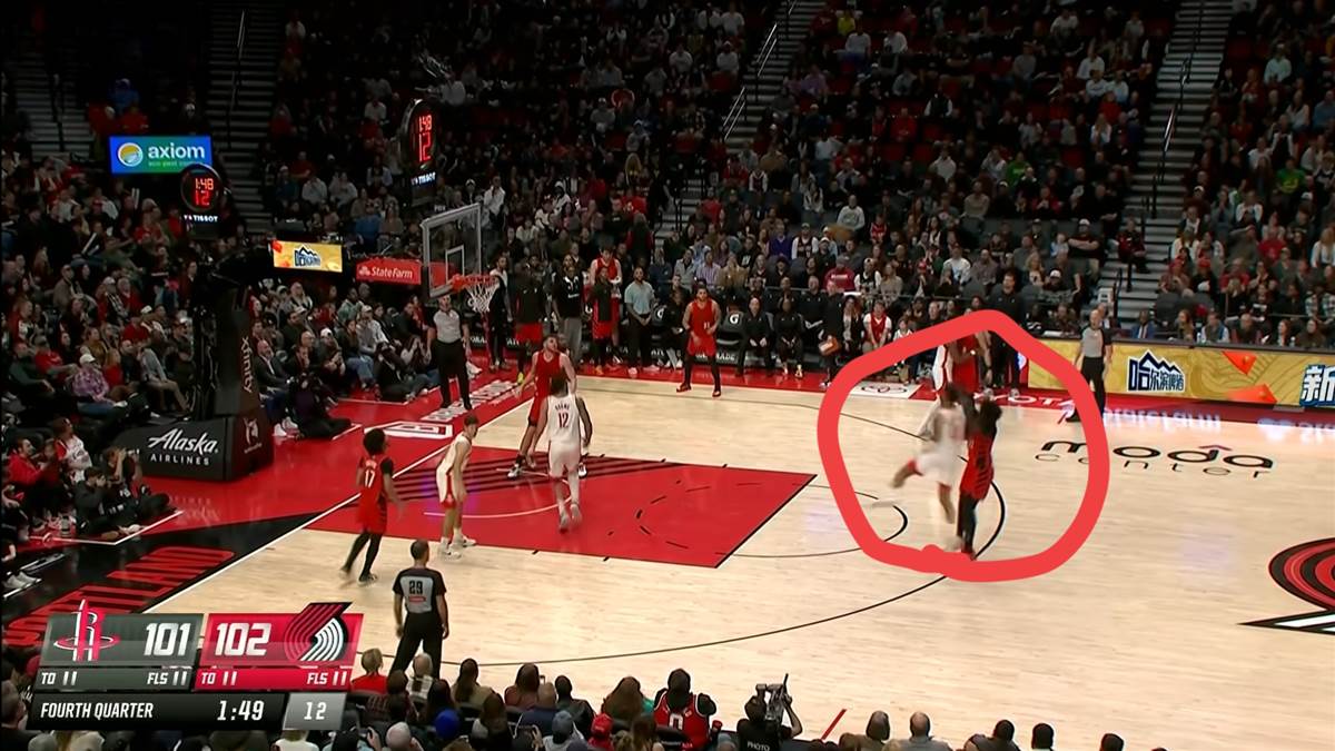 距離比賽結束還有1分47秒,火箭101-102落后開拓者1分,火箭球員小賈巴里史密斯撲向三分投籃的開拓者球員西索科,被吹三分犯規,這直接把杜蘭特搞破防了。