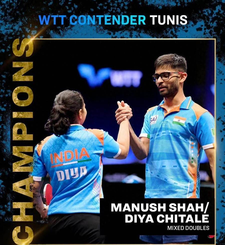 4月26日晚,WTT突尼斯站混雙決賽中,印度組合瑪納什·沙/奇塔萊爆冷以3-2力克本站奪冠熱門日本的松島輝空/張本美和組合,奪得混雙冠軍! 五局比分是:11-9、5-11、14-12、3-11、11-6! 這是印度混雙首奪WTT冠軍!