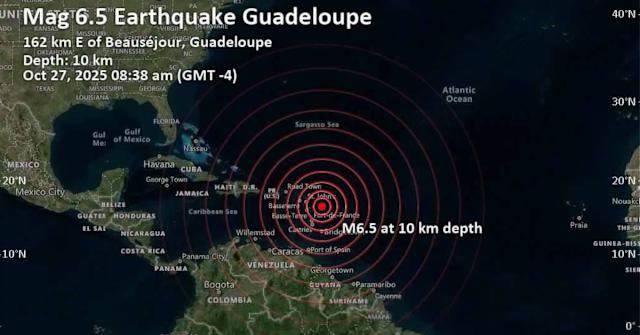 當地時間晚間8時38分,首波規模6.8強震來襲,後來修正為6.5。這起地震的震央位于多明尼加和波多黎各東南方,距離法國海外省瓜德羅普的貝塞茹爾東方約170公里。值得注意的是,震源深度相當淺,僅有10公里。