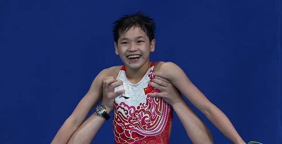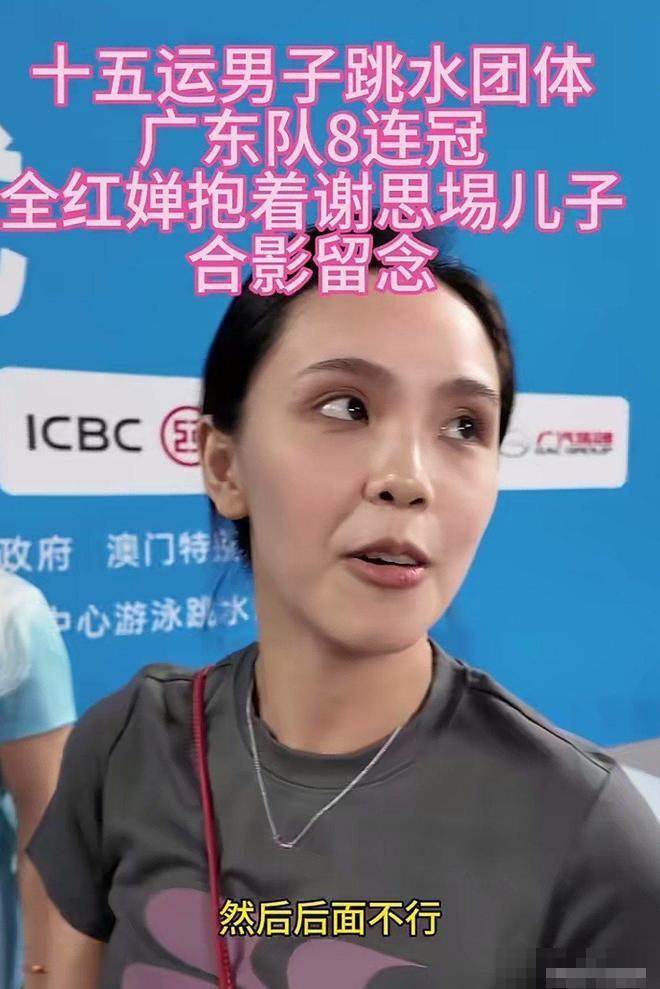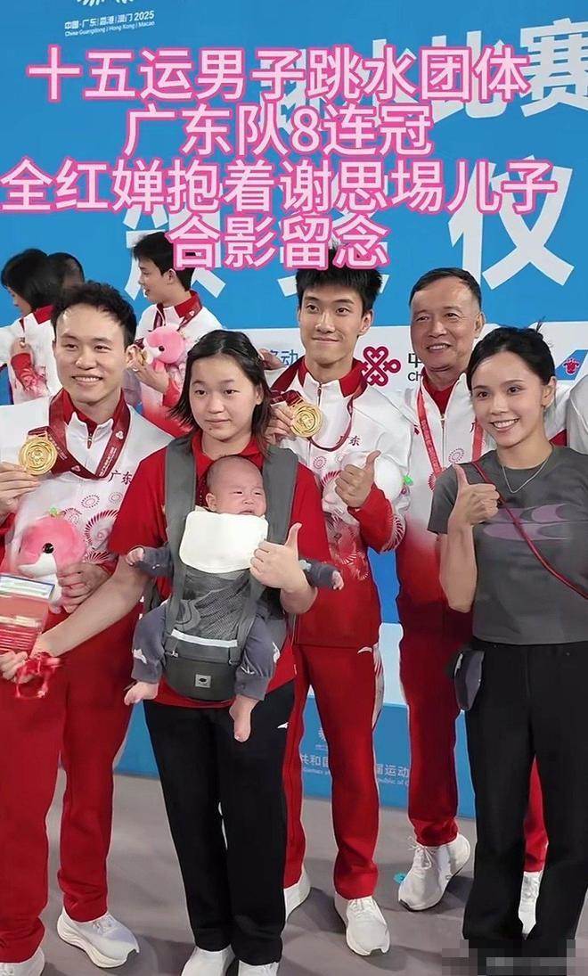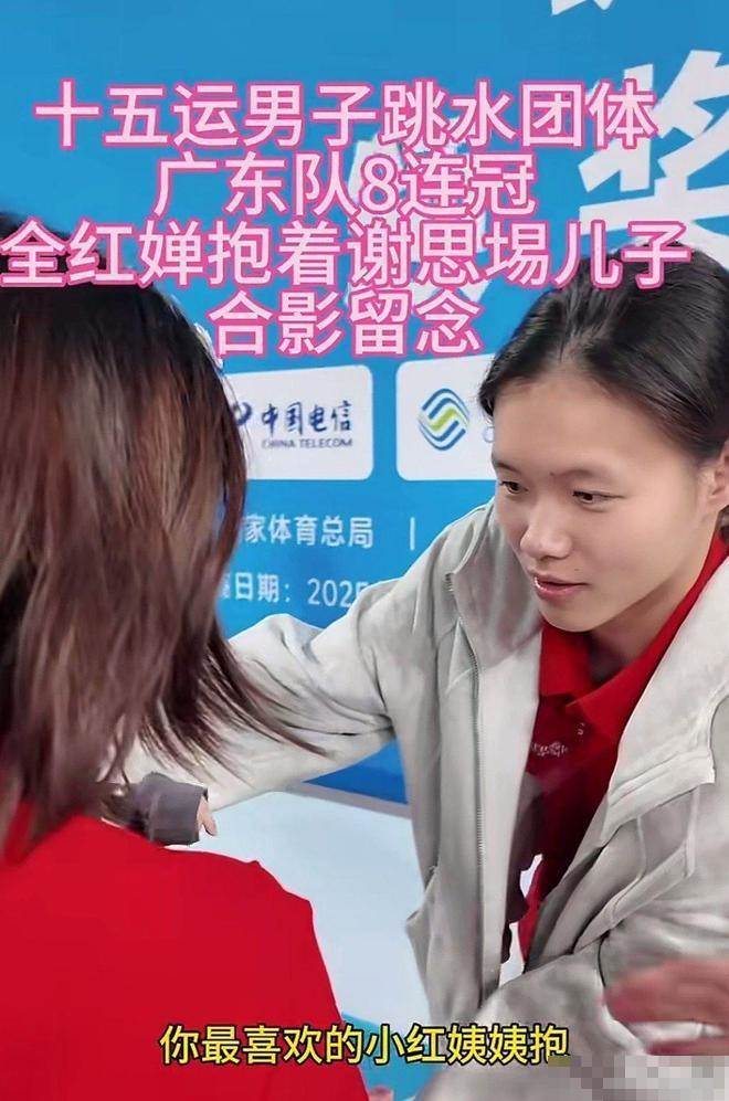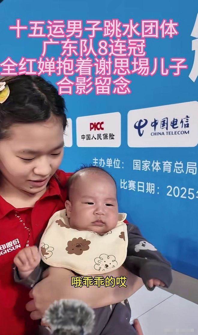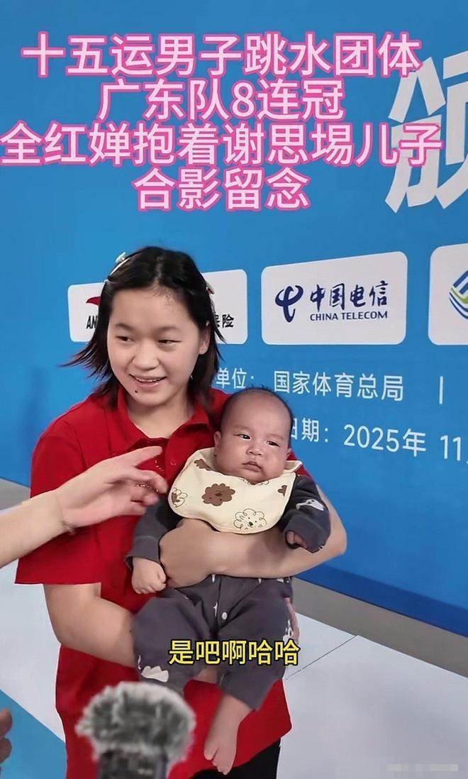 全運會跳水男團頒獎現場,她直接化身「帶娃小能手」,幫師兄謝思埸哄起了娃,畫面暖到人心坎里。