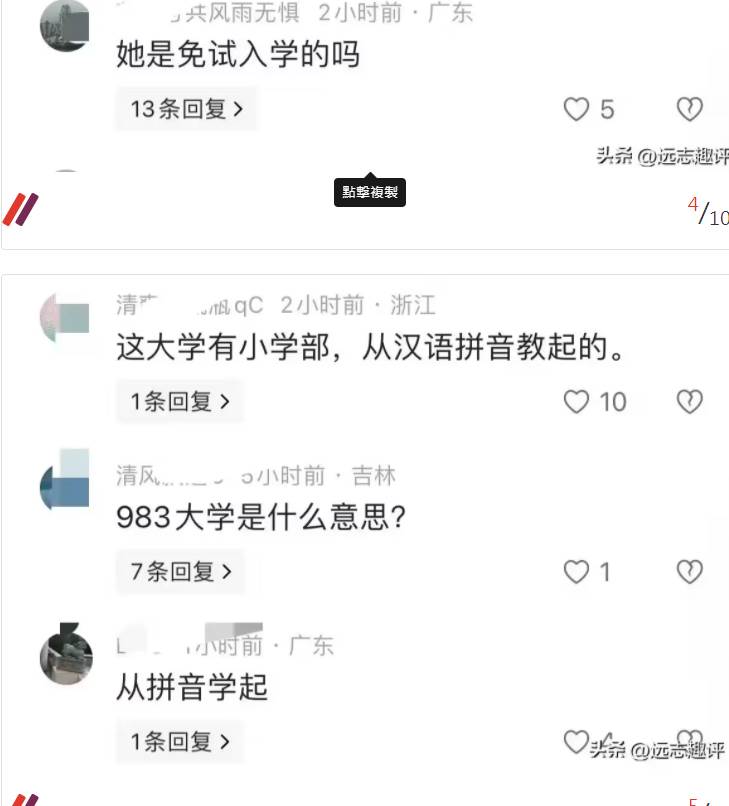 憑藉著她的影響力和賽場上的成績讀一所大學理所當然,特殊人才,特殊培養,讓優秀運動員保送進入大學學習也再正常不過,也是他們理應得到的,全紅嬋這次到學校報到,眾多網友紛紛表示祝賀,恭喜她解鎖新身份。但是,同時也有一些人冷嘲熱諷,話里話外透露著一股酸味,有人故意詢問說她是免試入學嗎?還有人諷刺說建議從義務教育階段學起,從漢語拼音教起,更有甚者認為她就此會會退役。
