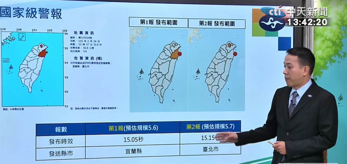 氣象署地震測報中心技正廖哲緯指出,今天的地震從空間構造研判,與去年宜蘭近海規模7地震位置很接近。(圖/中天新聞)