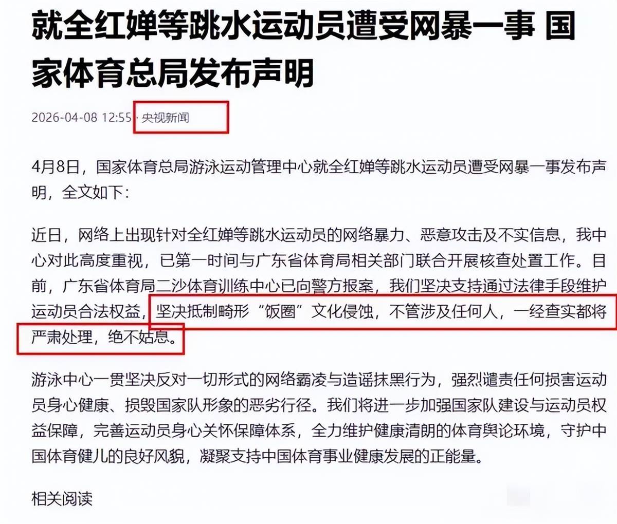 訊息一齣,官媒立馬出手支援,央視率先發聲,怒批網暴惡行,明確表示網路不是法外之地,要嚴懲施暴者。