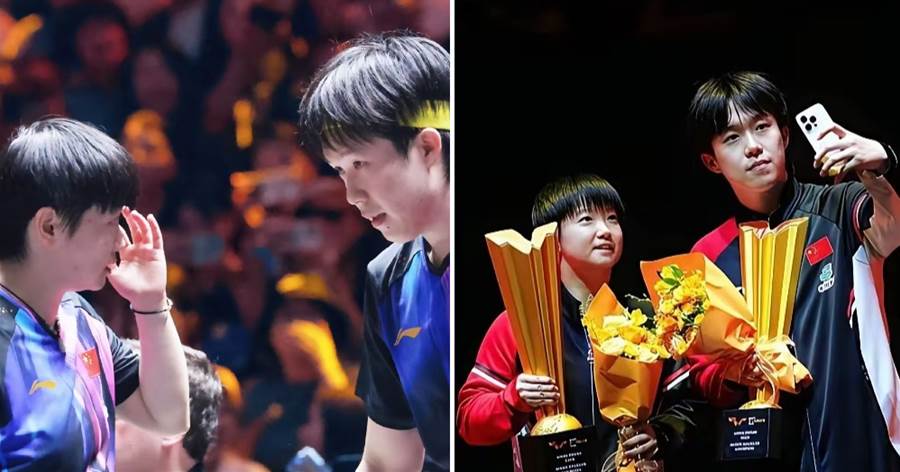 北京大滿貫混雙決賽,孫穎莎與王楚欽以比分3-0完勝隊友黃友政/陳熠,奪得混雙冠軍。