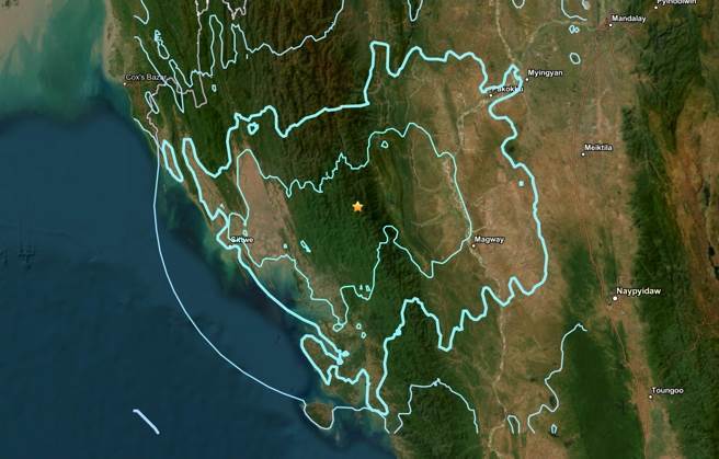 根據USGS資料顯示,震央位在馬圭省(Magwe)仁安羌(Yenangyaung)以西95公里處,震源深度約62公里。