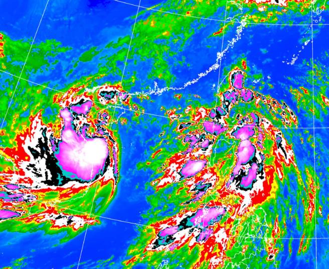 中央氣象署預報員林秉煜說明,距離鵝鑾鼻東北東方大約1800公里的哈隆颱風在今天早上已經增強為強烈颱風,對台灣沒有影響,但前往日本的民眾要注意相關的航班資訊。另外,在鵝鑾鼻東南東方大約1900公里的海面上有一個熱帶性低氣壓,未來路徑大致會朝西北方向移動,來到琉球南方的海面,未來也會轉向朝日本海面移動,對台灣影響相對較少。