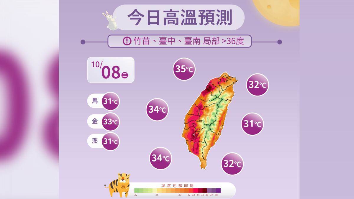 至于未來高溫,林秉煜表示,東半部31到32度,西半部大概34到35度,離島大概31到33度,今天還是要留意包括竹苗、台中、台南等地局部會有32度高溫出現,要注意防曬。