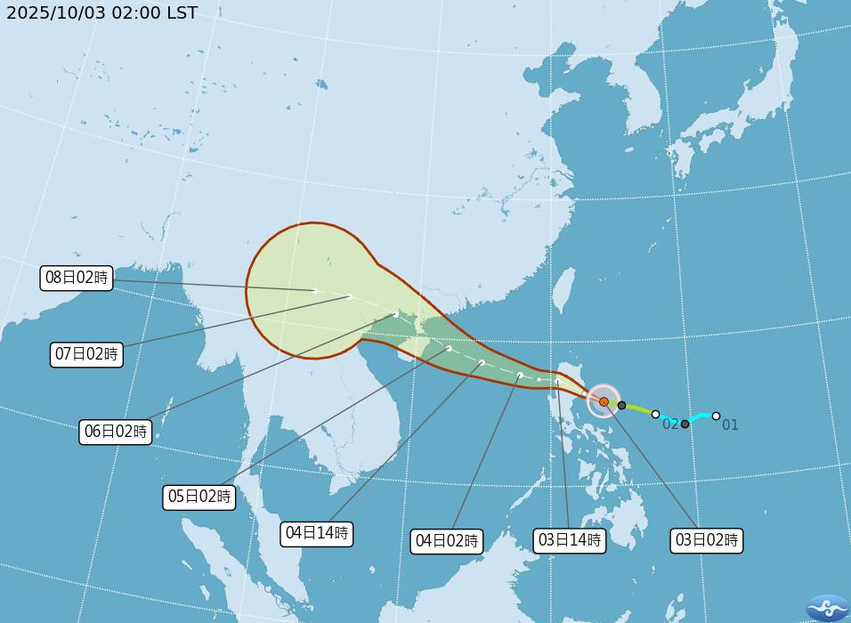 張承傳指出,今明兩天(3、4日)天氣概況相似,受颱風外圍環流影響,東半部地區及恆春半島有局部短暫陣雨或雷雨,並有局部較大雨勢發生機率。到了周六、周日(5、6日)中秋連假期間,水氣減少,各地大多為多雲到晴,僅恆春半島有局部短暫陣雨,午後中南部地區及其他山區有局部短暫雷陣雨。