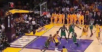 于是,湖人和凯尔特人第一节第一秒开始,双方就想都用一波强力的进攻彻底压倒对方!可是一节比赛打完,双方主力拼的筋疲力竭,这种场面在当时来看真的透过屏幕都感觉特别有压力!