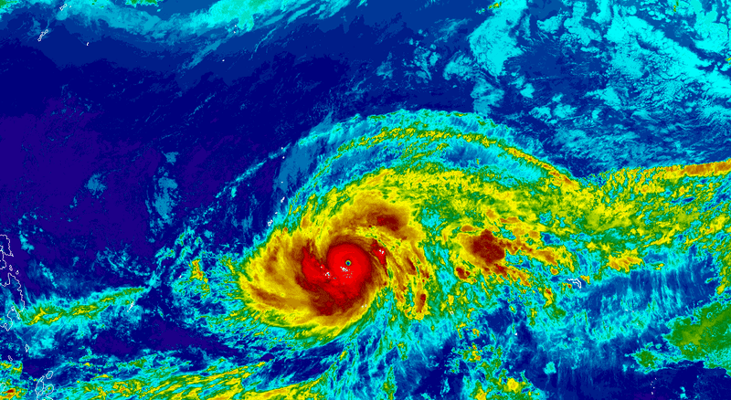目前位于關島東南東方海面上的颱風「辛樂克」,已于4月12日14時增強為強烈颱風,以每小時14公里的速度向西北移動,成為2026年首顆強颱。(圖/noaa.gov)