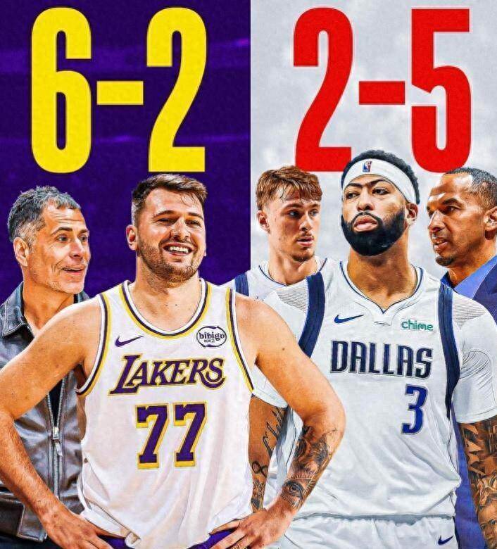 如今東契奇在湖人大殺四方,場均轟41.3分11.5籃板8.3助攻,帶隊6勝2負;而戴維斯呢?