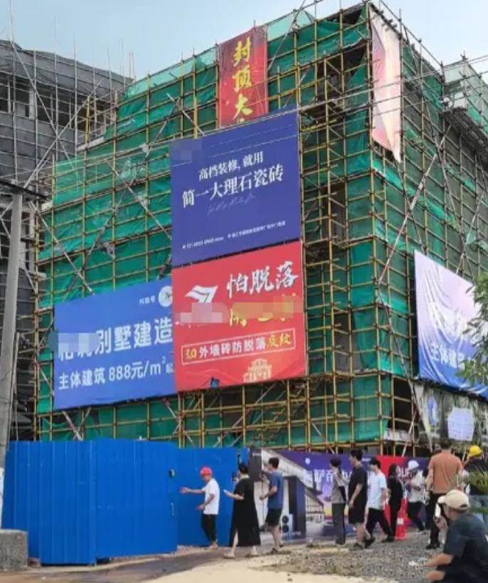 可在這蓋房的過程中,有一群蹭流量的人用無人機去拍攝別人的私生活,而同一時間,某些廣告商也在外圍的圍欄上開始了打廣告。