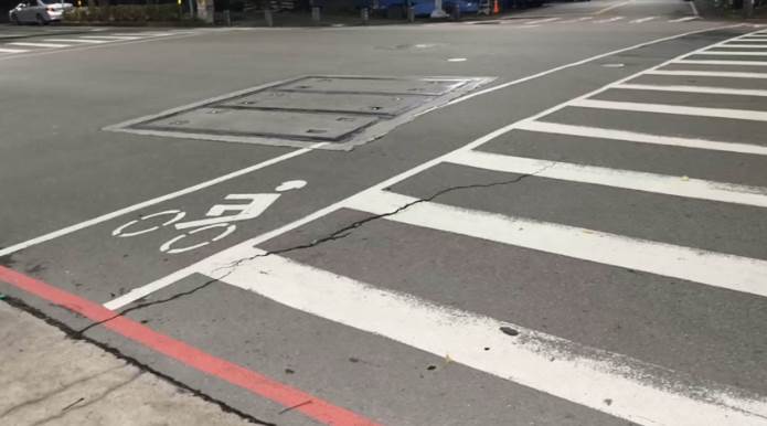 新莊馬路路面因為地震出現裂痕。(圖/東森新聞)