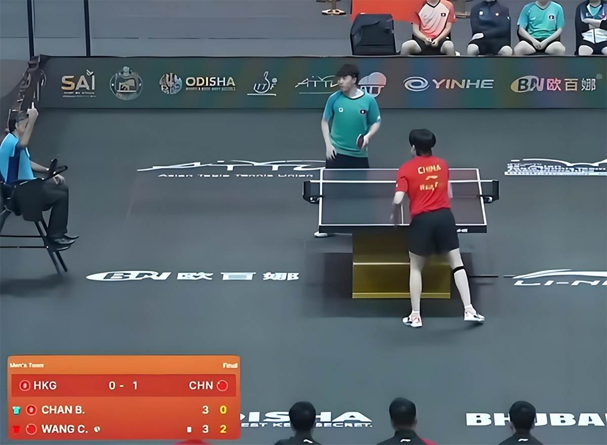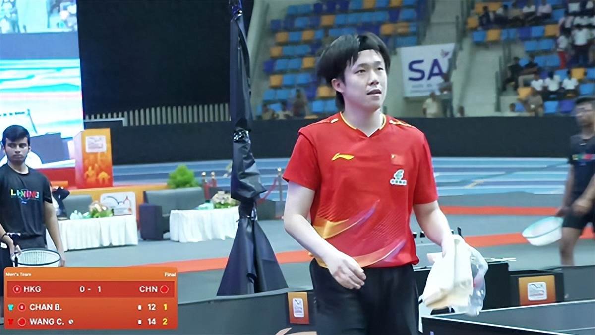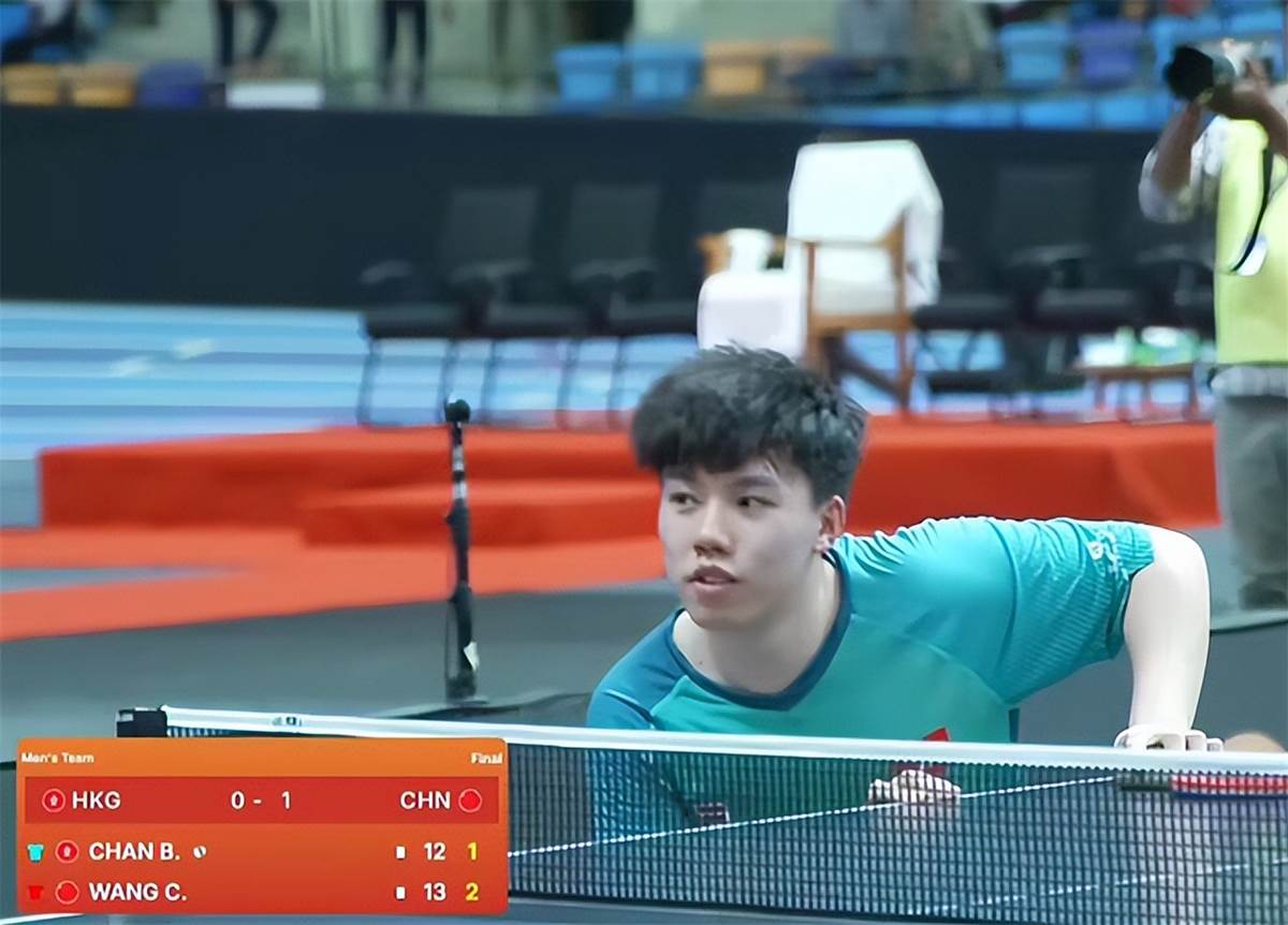 2025乒乓球亞錦賽,男團決賽,第二盤,王楚欽出戰,經過四局鏖戰,3-1戰勝陳顥樺,四局比分為12-10、11-9、5-11、14-12,幫助國乒男團2-0領先中國香港。