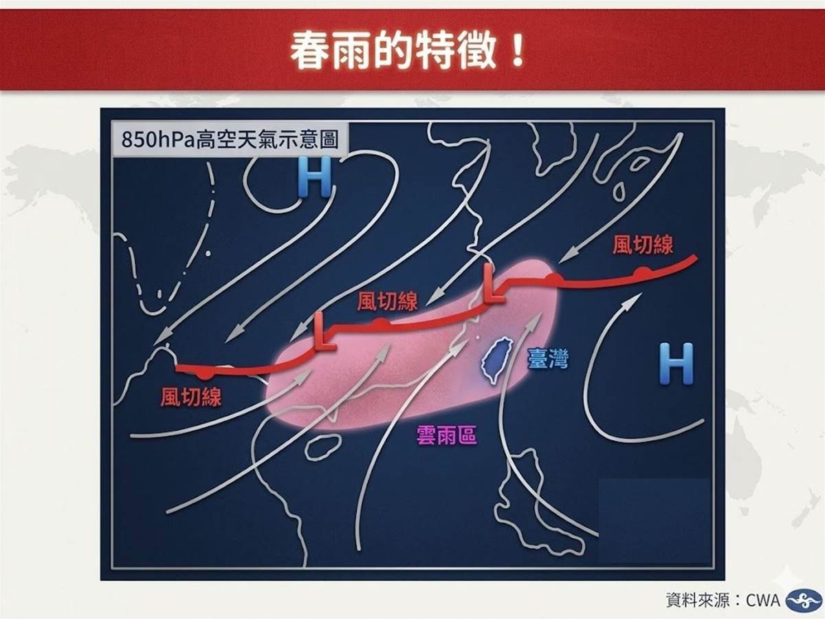 1.降雨型態(細雨綿綿、不連續):春雨多數為層狀雲的降水特性,常伴隨「柔和又細密」的細雨,雨勢較為溫和且時斷時續,較不易出現長期豪雨。