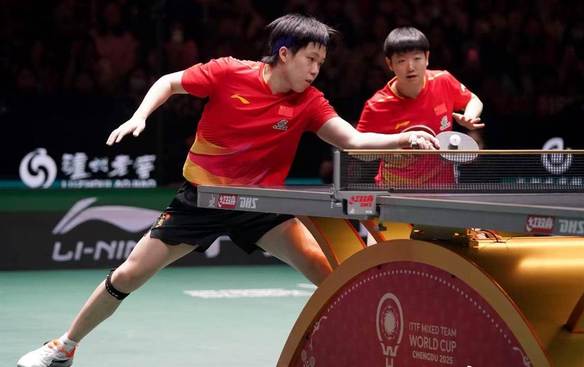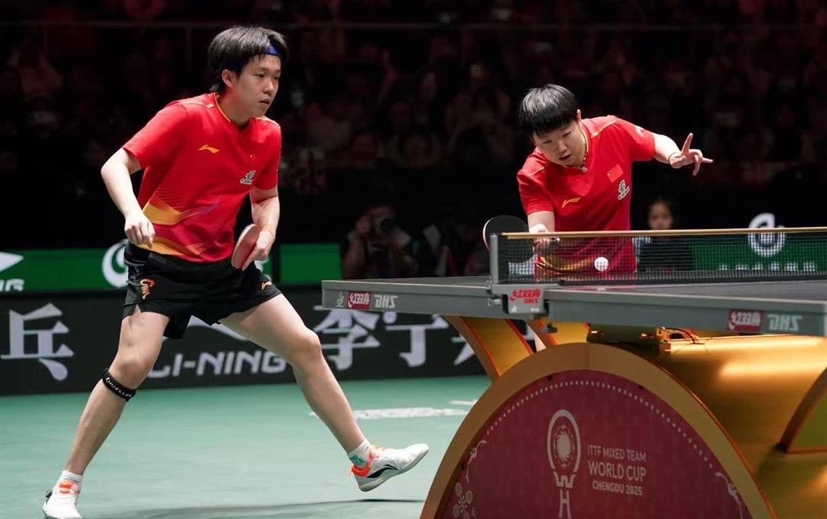 蒯曼以11-4、11-9先勝兩局,第三局9-11惜敗,最終以2-1戰勝朱成竹,為中國隊再添2分。林詩棟以絕對優勢11-3、11-4、11-1橫掃林兆恒,3-0速勝鎖定勝局,第三局僅讓對手得1分。