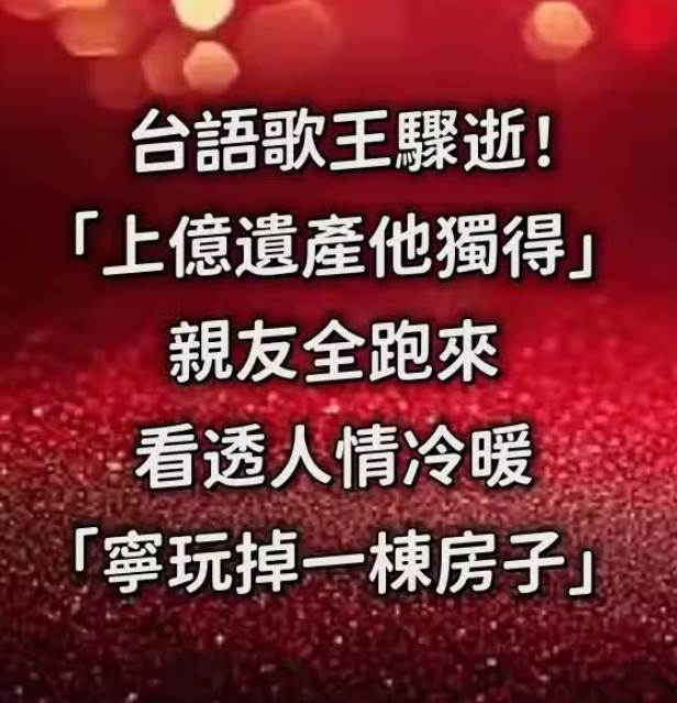 近日,黃志強受訪表示,因為遺產看清了人情冷暖:「為的是什麼,我也不知道啦...」