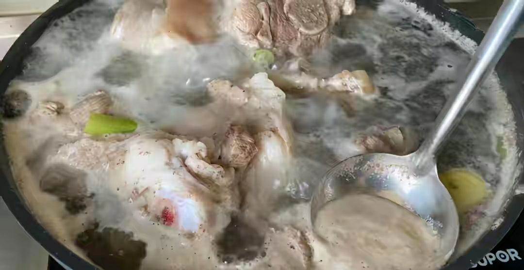 1、首先咱們將新鮮的大骨頭五斤,冷水下鍋,加入少許的蔥姜料酒去腥,焯水五分鐘后,撇去浮沫,倒出來用涼水清洗干凈,這樣做出的大骨頭才不腥氣。