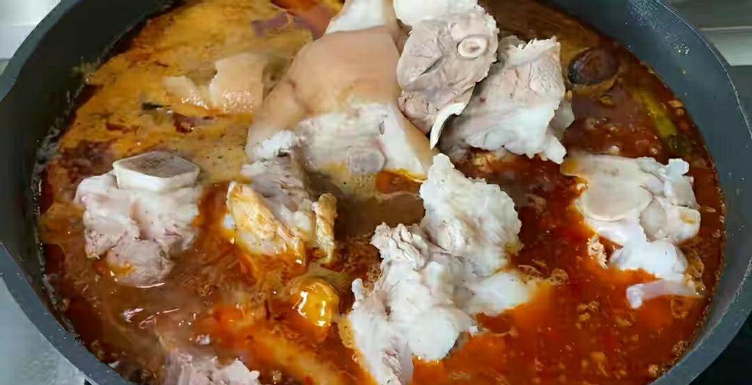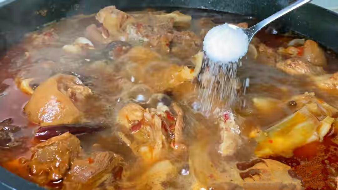 2、做這個醬大骨,一定要先燉半小時后再放鹽,提前放鹽,鹽分會過早地滲入到肉中,導致做出的醬大骨,味道過咸,而且還嚼不動。