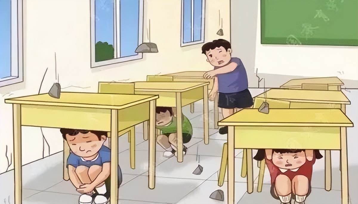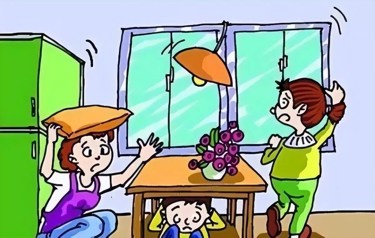 2、身體應采取的姿勢:伏而待定,蹲下或坐下,盡量蜷曲身體,降低身體重心。抓住桌腿等牢固的物體。