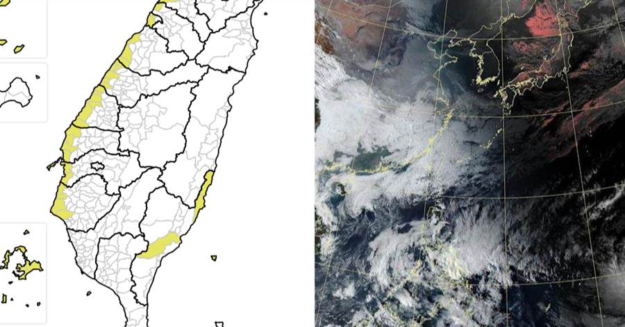 中央氣象署今(15)日下午發布陸上強風特報,受東北風增強影響,明(16)日上午至晚上新北市、桃園市、新竹市、新竹縣、苗栗縣、台中市、彰化縣、雲林縣、嘉義縣、台南市、台東縣(含綠島)、澎湖縣、連江縣等13個縣市局部地區,有平均風力達6級以上或陣風8級以上發生的機率,達到黃色燈號標準。
