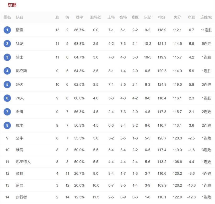 截至今天赛前,篮网3胜12负排名东部倒数第3,联盟倒数第5。