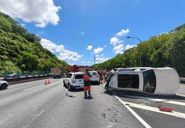 警方呼籲,用路人遵守交通規則,行車應保持安全距離,開車勿分心,不要疲勞駕駛,隨時注意前方動態,以免遇到狀況應變不及。