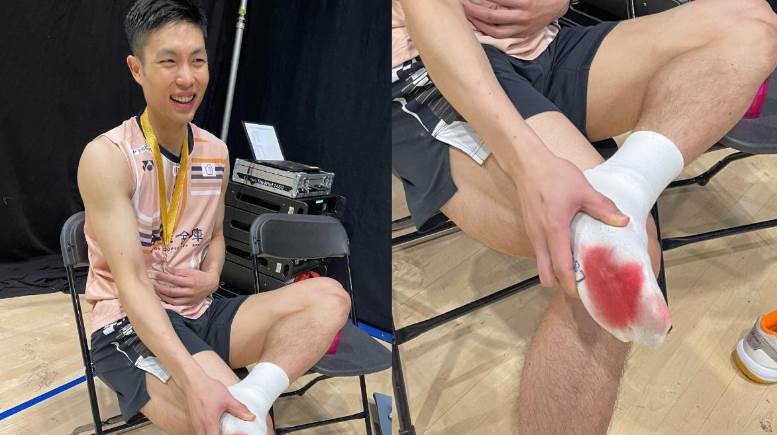 從首輪到決賽,周天成連續五場比賽均打滿三局,體能與心理承受極限考驗。尤其在決勝時刻,他左腳底的水泡于比賽中磨破,鮮血直接浸濕鞋襪,但他僅簡單包紮後便重回賽場。
