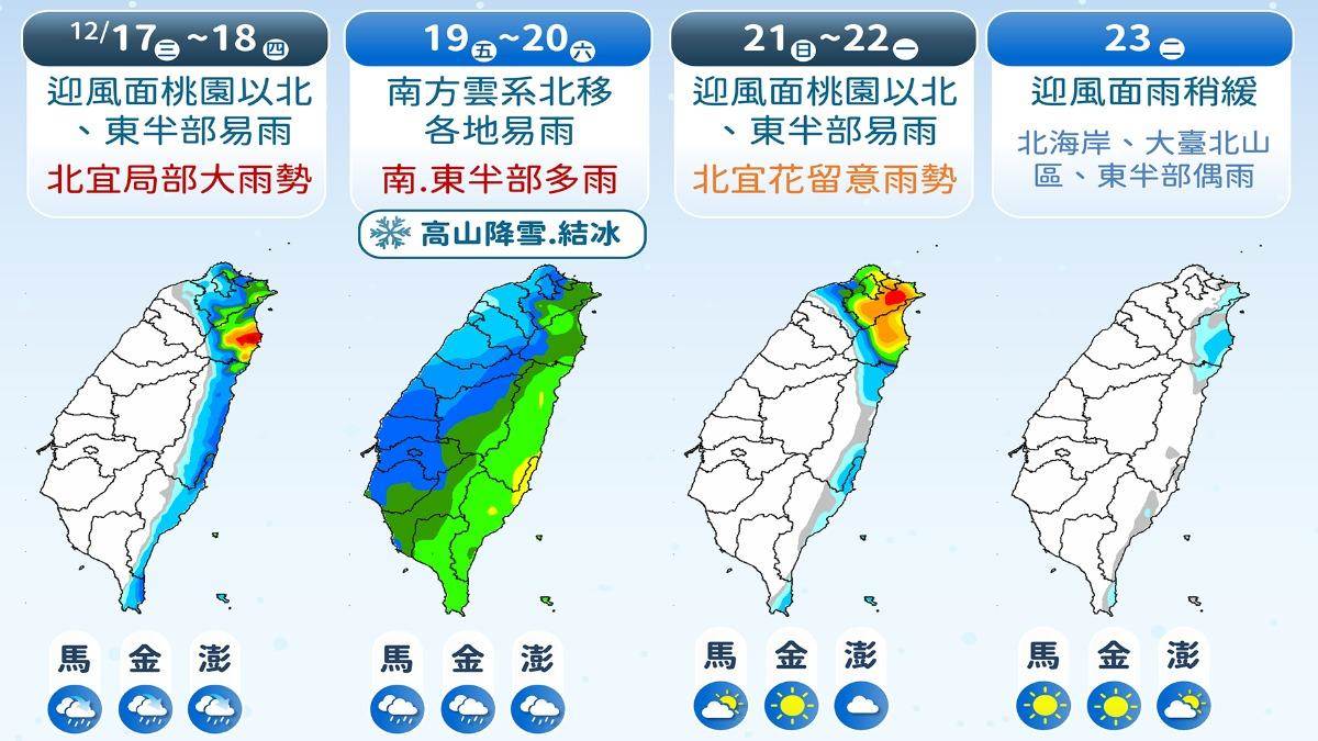 下週三(24日)起另一波比前波稍強的冷空氣南下,但吳德榮強調目前模擬仍屬東北季風等級,模式會如何調整有待觀察。