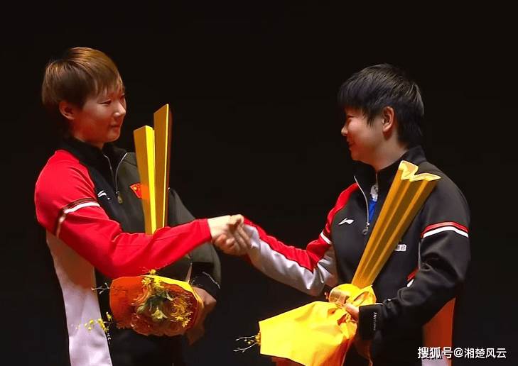 孫穎莎走下領獎台前,特意握著曼昱的手,祝她奪得女單冠軍。海產姐妹都微笑著,彼此尊重和欣賞。