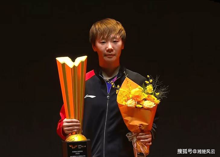 孫穎莎再次走上領獎台,與王曼昱一起拍照留念。孫穎莎臉上終于有了一絲微笑。