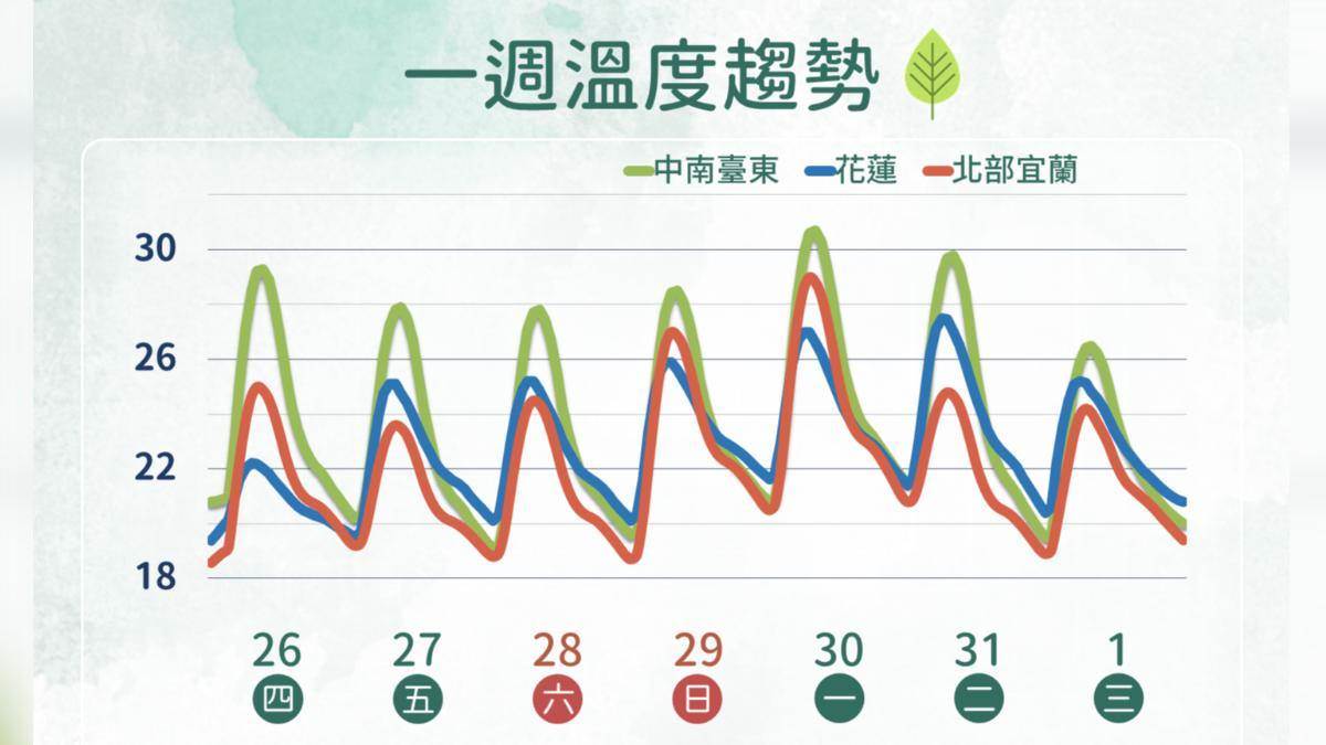 溫度方面,未來一週北部白天高溫約落在25至26度之間,但在降雨期間將略降至23度左右,體感偏涼;中南部因天氣相對穩定,高溫仍可達28至30度,整體變化不大。氣象署提醒,近期天氣變化快速,民眾應隨時關注最新氣象資訊,適時調整穿著與行程安排。