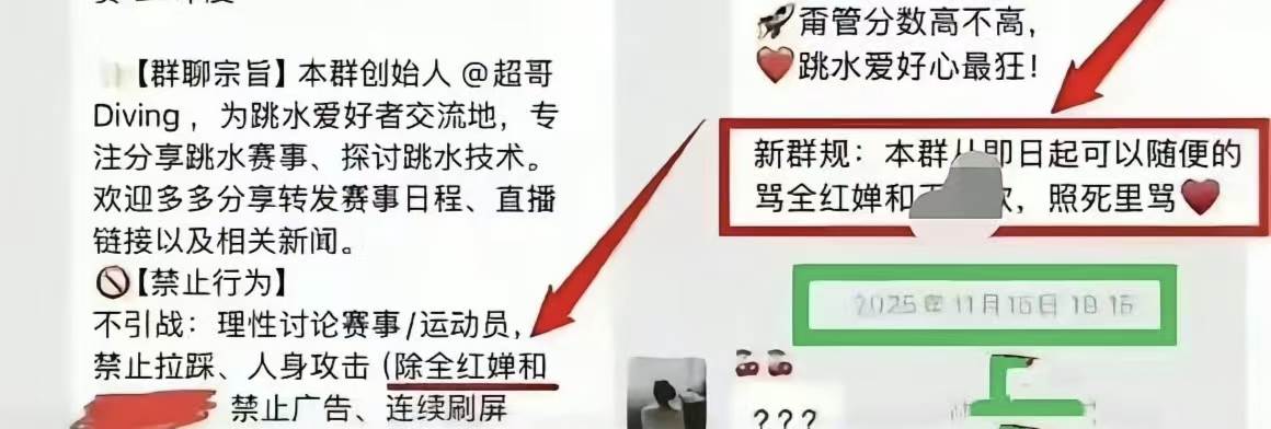 群公告赫然寫著「禁止攻擊其他運動員,全紅嬋除外」。