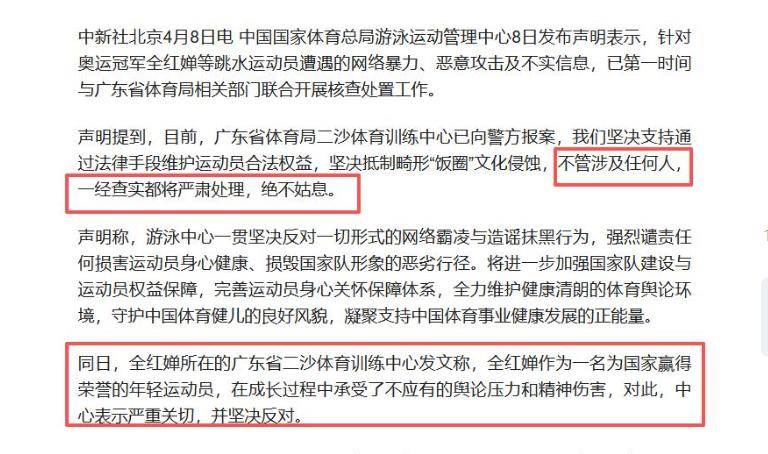 國家體育總局游泳運動管理中心緊隨其後發聲: