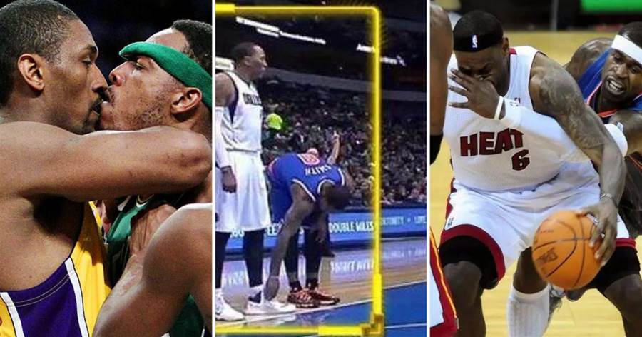 我們都知道,阿泰斯特可以說是球場上的破壞者。在羅德曼退役之后,他可以說接過了前輩的搞笑大旗,在場上是什麼事情奇葩就做什麼事情。看看這張照片吧,防對手有一萬種方法,阿泰斯特偏偏要選擇最為搞怪的一種,面對皮爾斯,直接直接把別人的球褲給扒下來了!放在大街上,這是要被說耍流氓的!