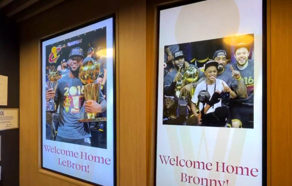 賽前,騎士隊也在客隊更衣室門口掛上了兩張歡迎回家的海報,海報的主角是詹姆斯和他的兒子布朗尼。無獨有偶,就在今天,有報道稱,騎士對詹姆斯第三次加盟持歡迎和開放態度,當然前提是詹姆斯成為自由球員。畢竟,騎士已經超過第二土豪線,很難通過交易來得到詹姆斯。