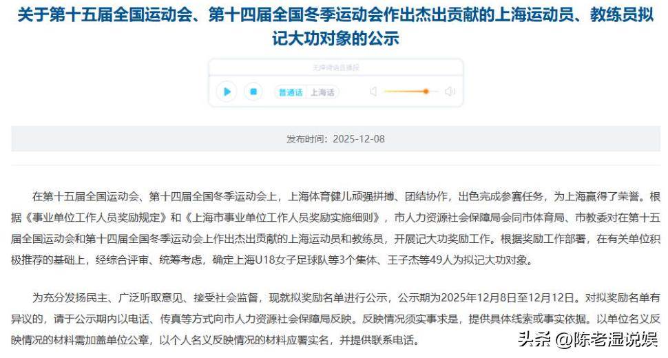 近日,上海市人社局的擬記大功公示,則進一步彰顯并傳遞了陳芋汐的精神。