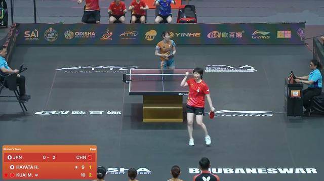 決定勝負的第三盤,由小將蒯曼對陣日本的早田希娜,面對壓力,蒯曼展現出了與她年齡不符的冷靜與實力,在首局以8-11失利的不利情況下,她及時調整戰術,以12-10、11-6、11-9連扳三局,逆轉戰勝早田希娜,為中國隊鎖定勝局,蒯曼在關鍵時刻敢于變化,堅決使用長球打相持,在接發球處理上也明顯改善,這些調整成為她逆轉獲勝的關鍵;第四局比賽中,早田希娜的搏殺戰術曾讓蒯曼以4-7落后,但她冷靜應對,追至7平,最終以11-9完成逆轉,展現出卓越的心理素質