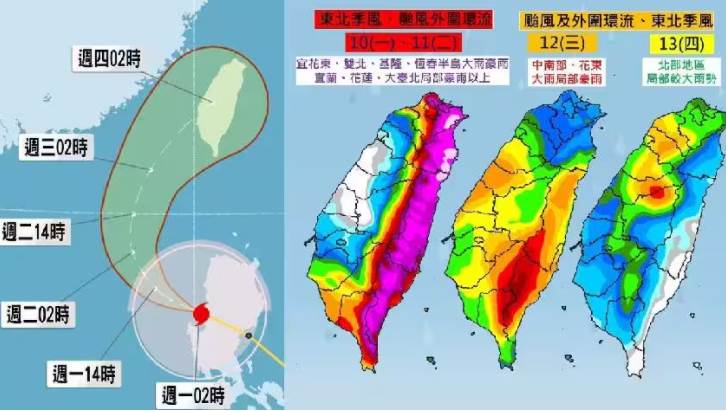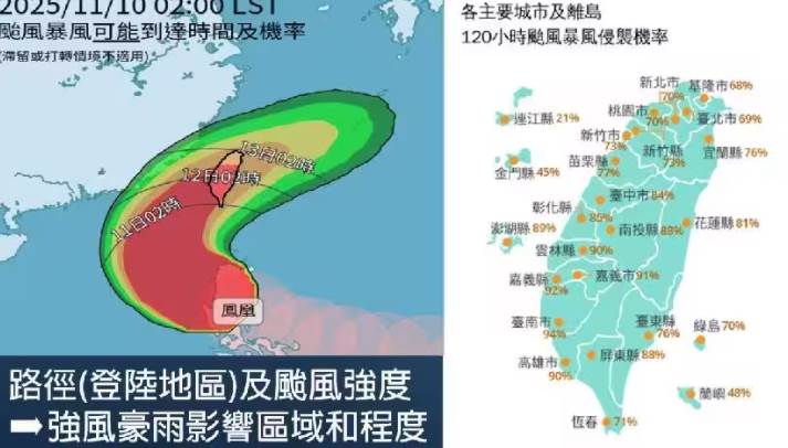 登陸位置從原先預測的南部逐步往北調整,「台灣颱風論壇|天氣特急」解釋,關鍵變數在于颱風北轉幅度。若北轉角度較小,路徑恐穿越台灣海峽;若北轉角度較大,從苗栗到屏東都可能成為中心登陸點。氣象署評估中南部機率較高,但桃竹苗地區仍不排除可能性。氣象署提醒,今日起受颱風外圍環流搭配東北季風影響,可能產生共伴效應,東北部、東部及大臺北地區有區域性豪雨發生機率。週三起中南部、花東地區轉為降雨重點區域,將出現陣雨或大雨、區域性豪雨。週四隨著颱風減弱遠離,降雨強度趨緩,但北部仍可能有較大雨勢。東半部與北北基的雨勢現在就要開始,至于是否會放颱風假,蔣萬安最後表示,目前鳳凰颱風路徑與轉向仍具高度不確定性,估對臺北市可能造成的風勢、雨勢衝擊,一定會做好萬全準備,持續料敵從寬、禦敵從嚴。
