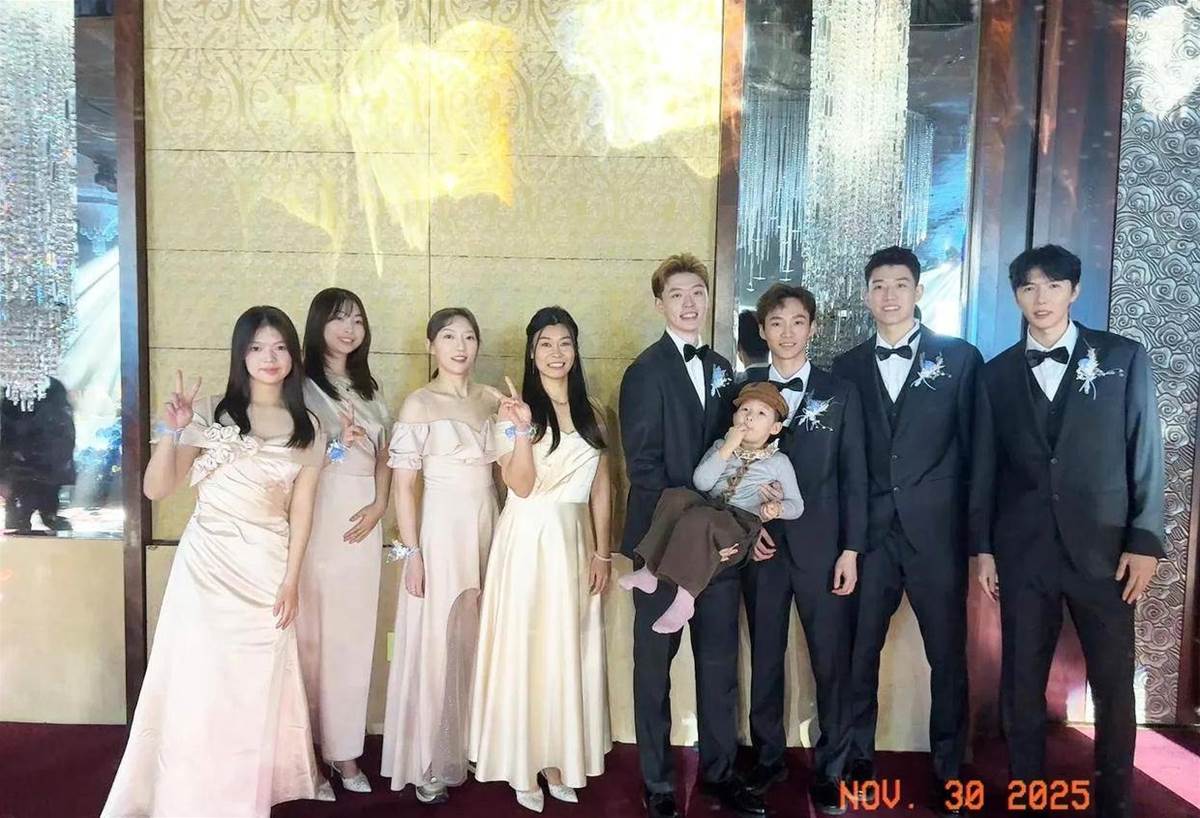 特別的是,伴郎伴娘團由李俊慧、陳清晨、賈一凡等世界冠軍組成,因成員身高均超190厘米,被戲稱為「 天團」,184厘米的劉雨辰站在其中略顯反差,還被調侃「努力踮腳融入」。