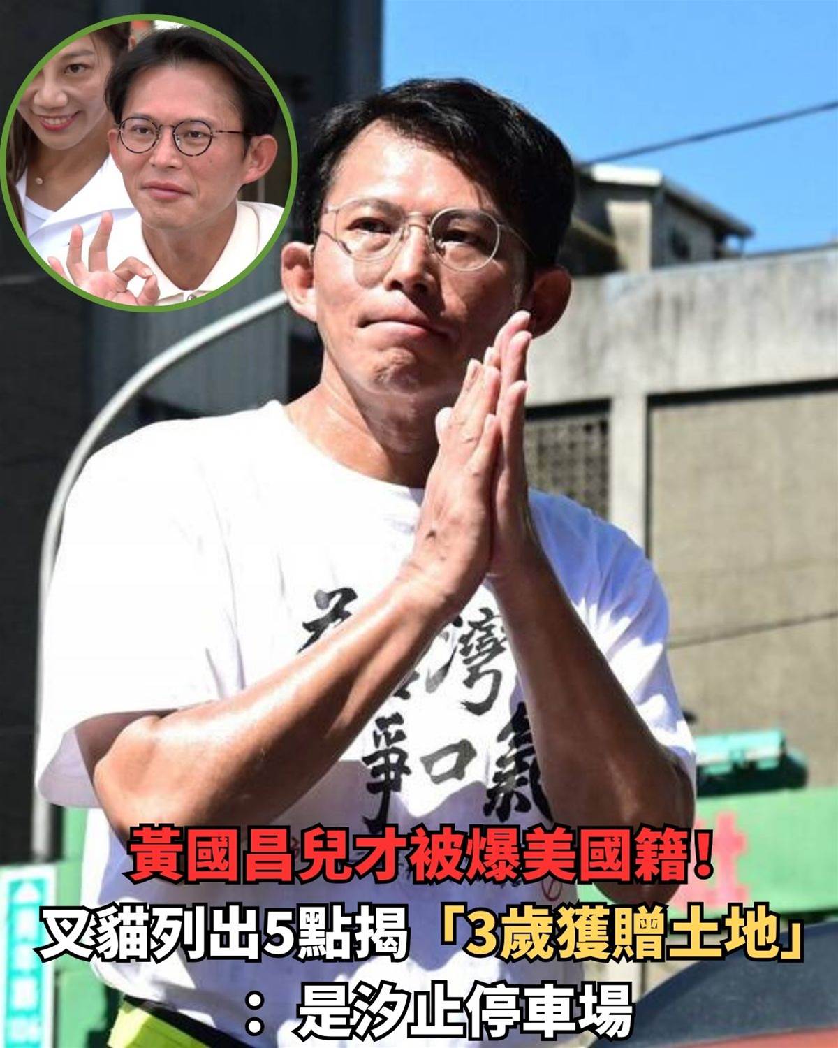 網紅四叉貓日前爆料民眾黨主席兼立委黃國昌,曾把名下一筆土地捐給國外出生的黃姓男子,透過推敲生日及身分證字號,研判為黃國昌兒子且擁有美國籍,黃國昌不滿表示「太太對此非常不高興」。四叉貓接著列出黃國昌兒子出生與受贈土地的時間序,表示黃國昌兒子3歲時就獲得2271平方公尺的土地,而這塊地就是被踢爆將汐止保護區土地變停車場的財產。